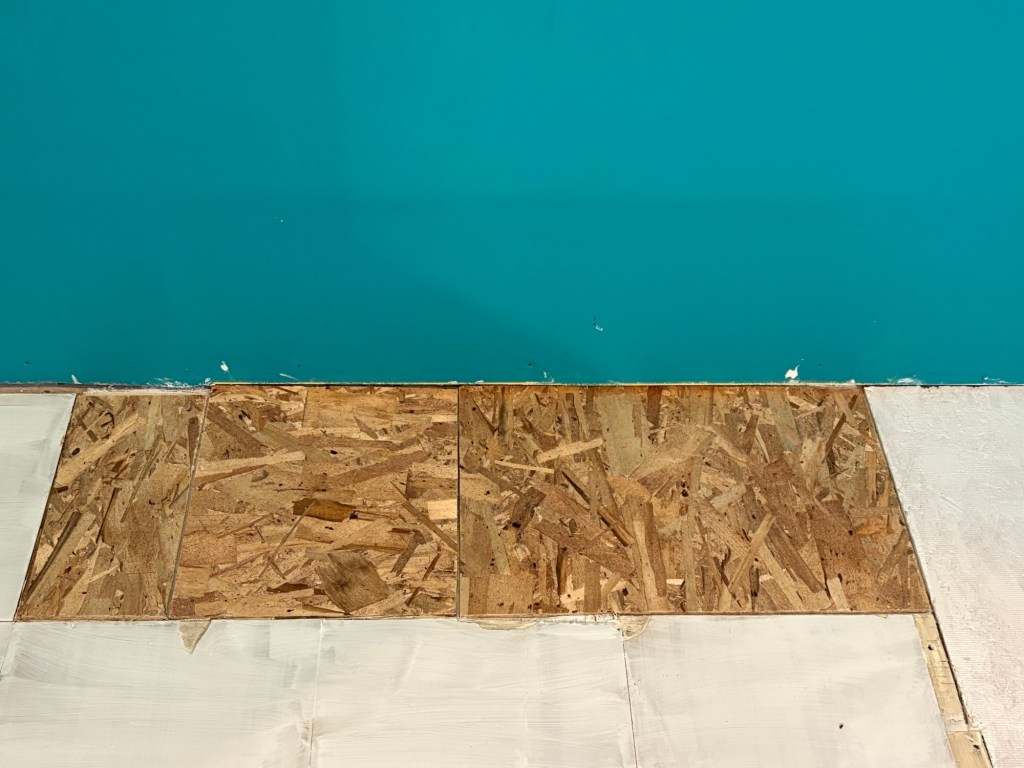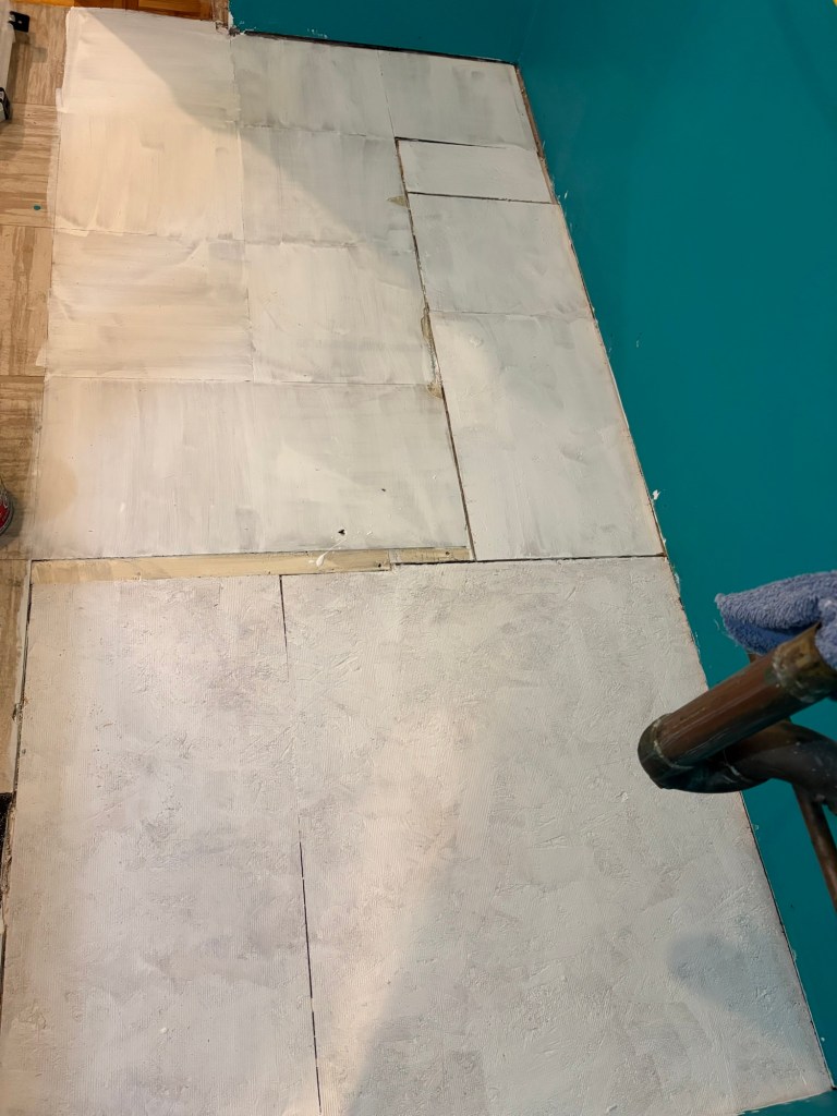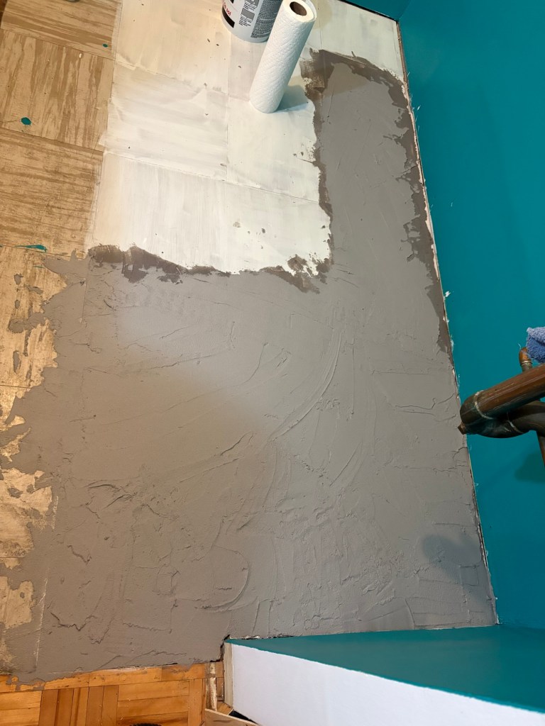 This week on the renovation, I had to add some cement the thickness of one tile to bring the floor up to the same level all around.