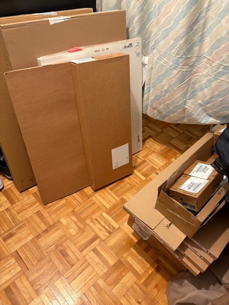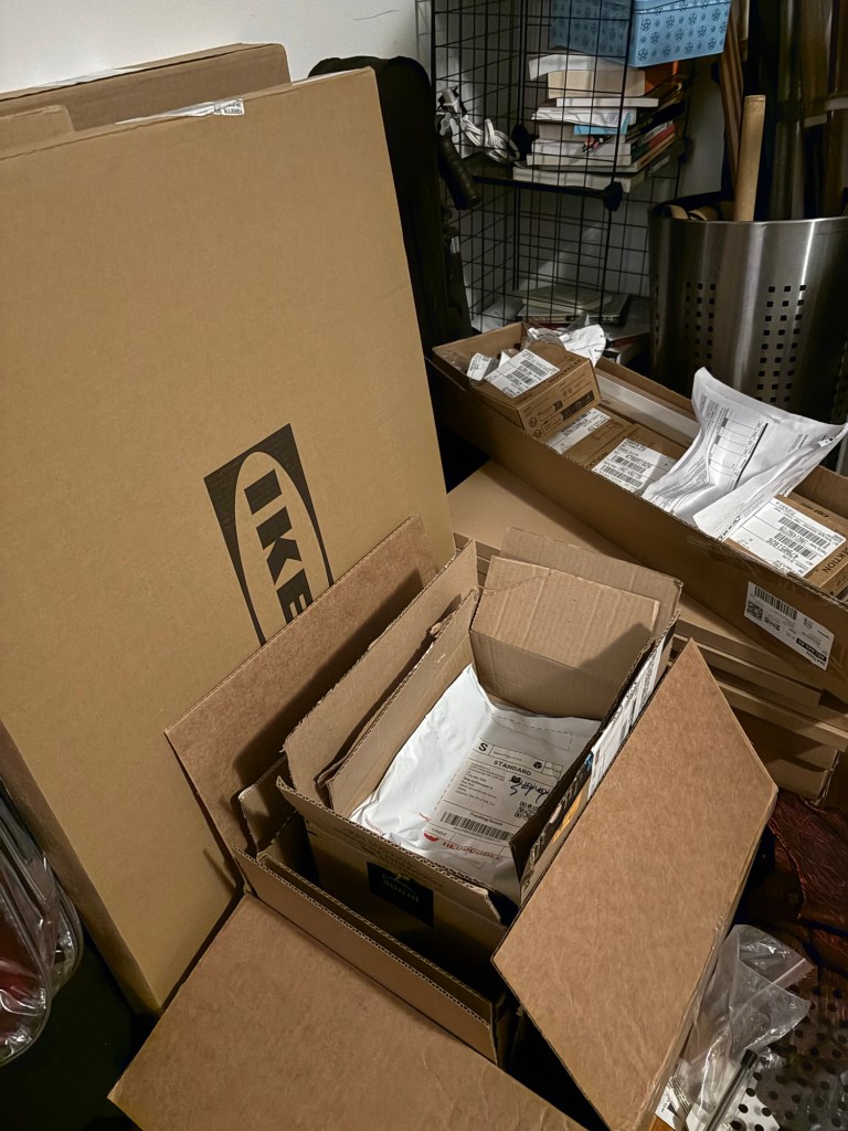 Week 28 began with accepting the delivery of my 2 base kitchen cupboards from IKEA. All 21 boxes!