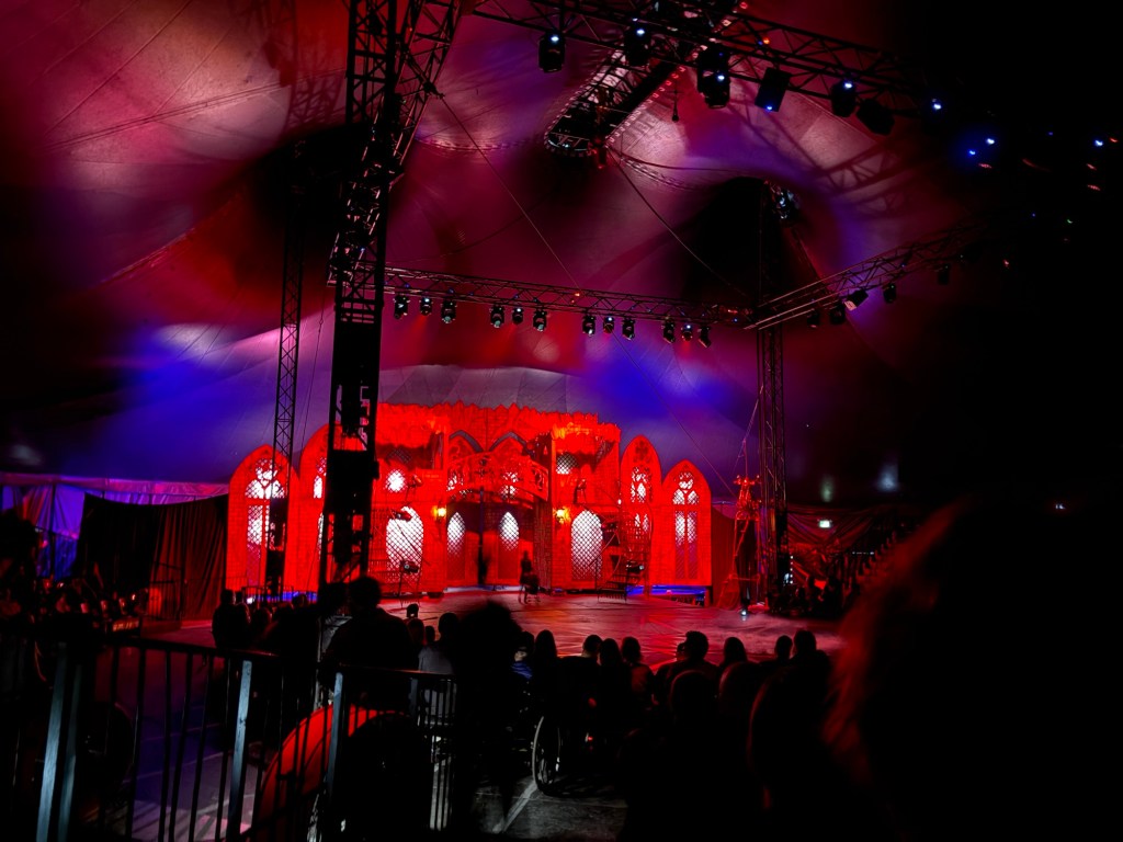 Eventually, we made it to our seats. The dimly lit tent set an otherworldly atmosphere.