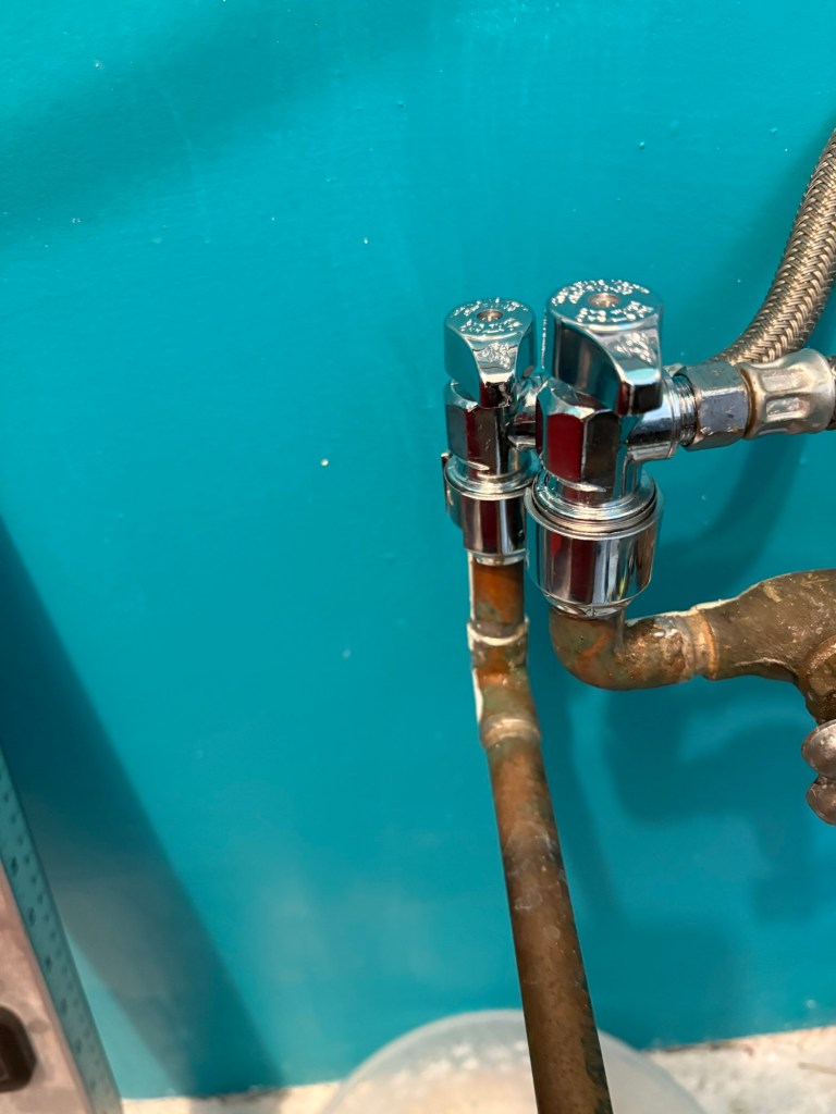 Wednesday plumbing wasn’t going well at all. My fitting was leaking! I spent some time even trying the old fitting and it leaked too. Whoever plumbed the kitchen sink in the first place left a ton of soldering mess behind and it caused the leaks because both kinds of fittings need a tight seal to the pipe to work correctly. I had to go get bigger files than I had at home to carefully take it off the copper pipe and allow a proper fit. I was still having issues with the old fitting. I did some more filing and the SharkBite one went on with no leaks. I was still waiting for access to my shut off for pipe two and was pretty spent after the first one. I truly hoped that once I got to the second one it would go smoothly as it didn’t have any soldering remanent to deal with, just a bit of paint.
