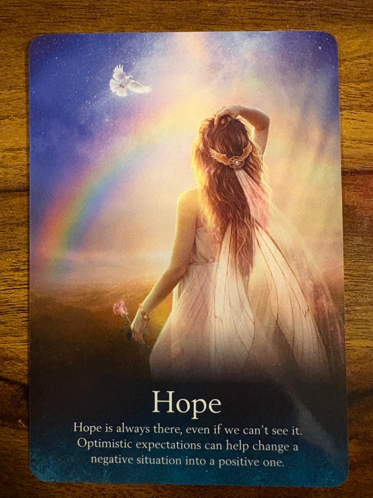 There was a full moon this weekend and the fairy oracle guiding me through this moon cycle is the Fairy of Hope. I don’t think a more perfect card could have surfaced at a time when I’m feeling overwhelmed by all I have going on right now. Staying positive will be a challenge, but it didn’t used to be so. When I was younger, it was second nature. I suppose years of bullies, toxic partners, and life’s challenges got to me after awhile. Starting off 2026 in a hopeful frame of mind won’t be easy, but I suspect it will be worth it.